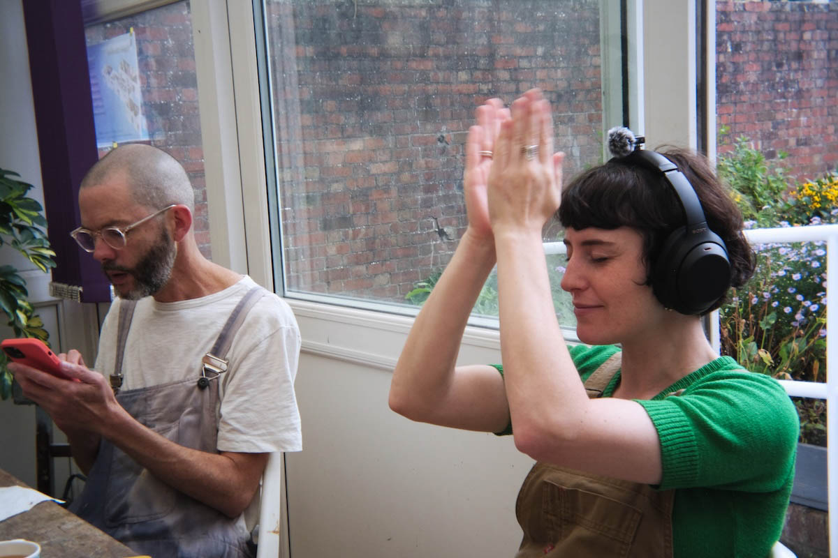People trying out the ANA headphones at Coastal Currents Festival 2025