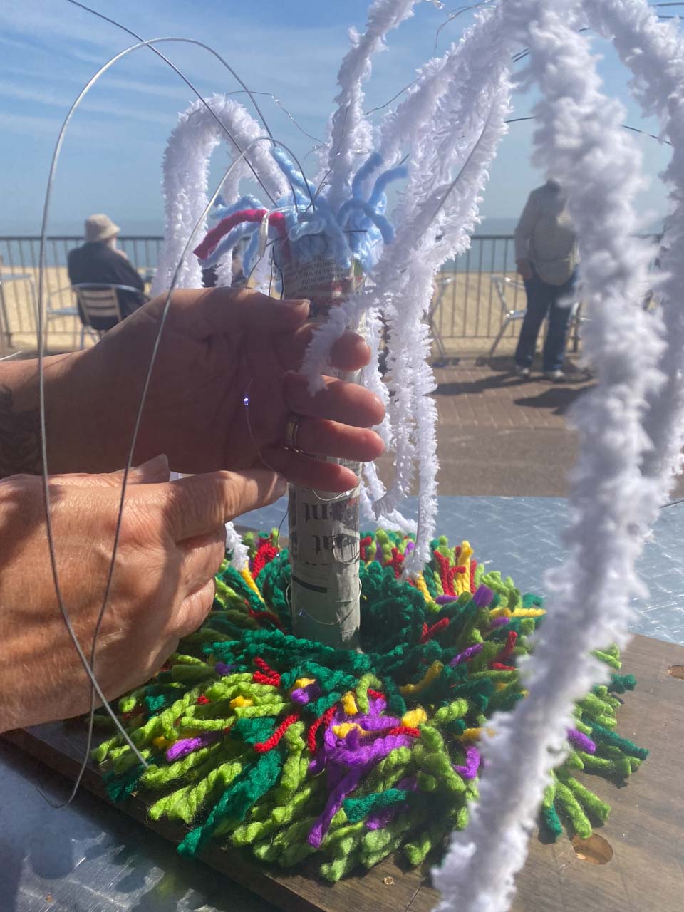Paul’s wife, Ally, also joined the project as she creates sculptures made from wool, cement etc. We met up regularly in person throughout, or online to discuss progress and ideas. Ally ran with the brief to create a prototype sensory tree to accompany our footage and audio for a proof of concept.