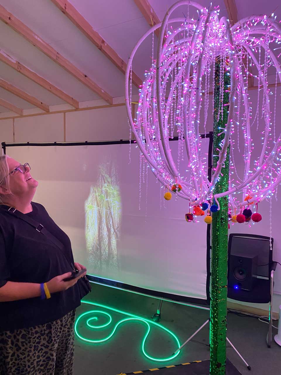 We tested out our proof of concept at the private view for an art exhibition running the projection and audio on a loop, with the themed sensory lit sculpture nearby. We spoke to guests to obtain feedback, which has given us further ideas of how to develop this concept further using motion activated sound and made contacts with a school that has pupils with PMLD and social club for people with additional needs.